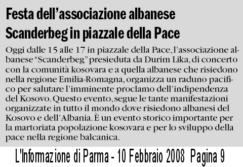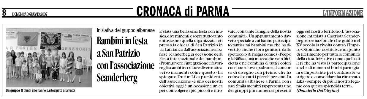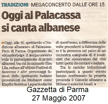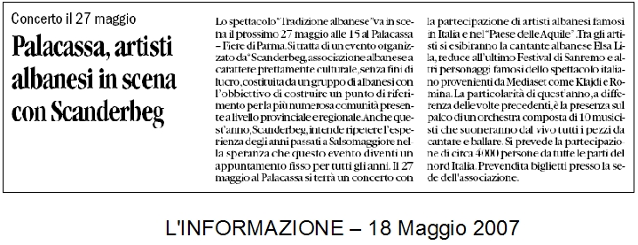 L'Informazione 10 Febbraio 2008 L'Informazione - 26 Novembre 2007 L'Informazione - 9 Settembre 2007 Gazzetta di Parma 3 Giugno 2007 L'Informazione 3 Giugno 2007 Gazzetta di Parma 27 Maggio2007 Gazzetta di Parma 28 Maggio2007 Gazzetta di Parma - 1 Dicembre 2006 -