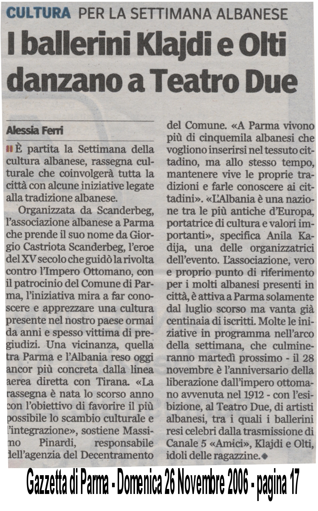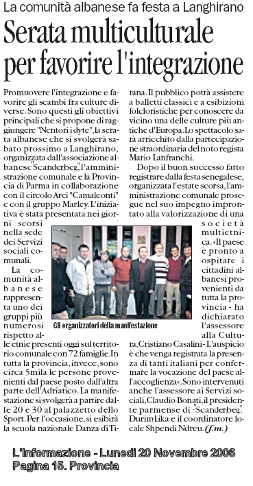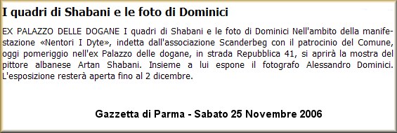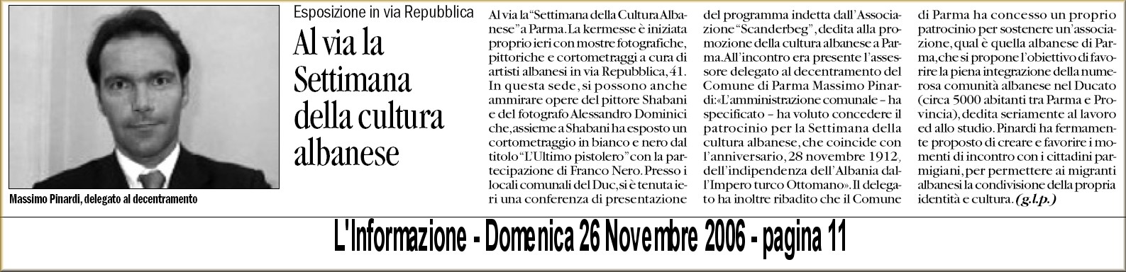 Leggi qui! Gazzetta di Parma - 26 Novembre 2006 - Leggi qui! L'Informazione - 26 Novembre 2006 - Leggi qui! Gazzetta di Parma - 25 Novembre 2006 - Leggi qui! Gazzetta di Parma - 20 Novembre 2006 -